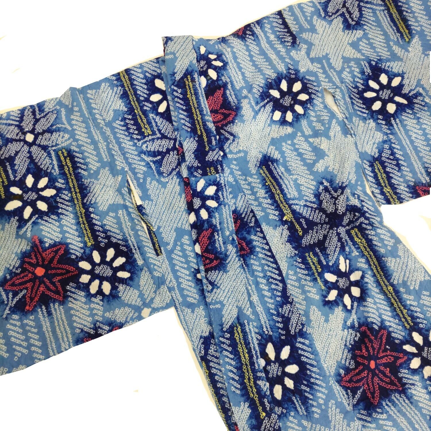 きれいな水色の絞りゆかたです。身丈152cm ゆき66cm 袖丈47cm