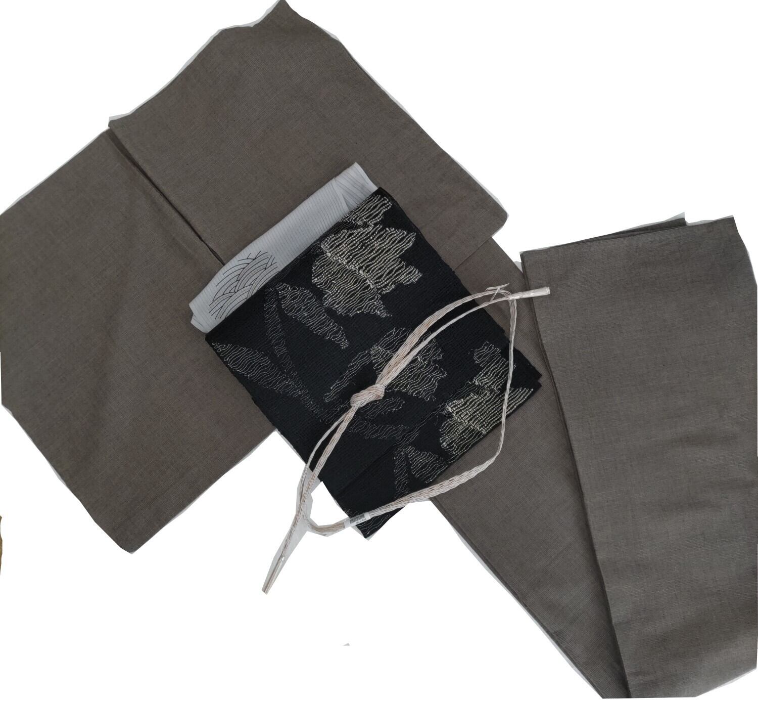渋いお色目の綿の単衣着物です。やわらかいニットのような綿です。軽くて気軽にお召頂けると思います。