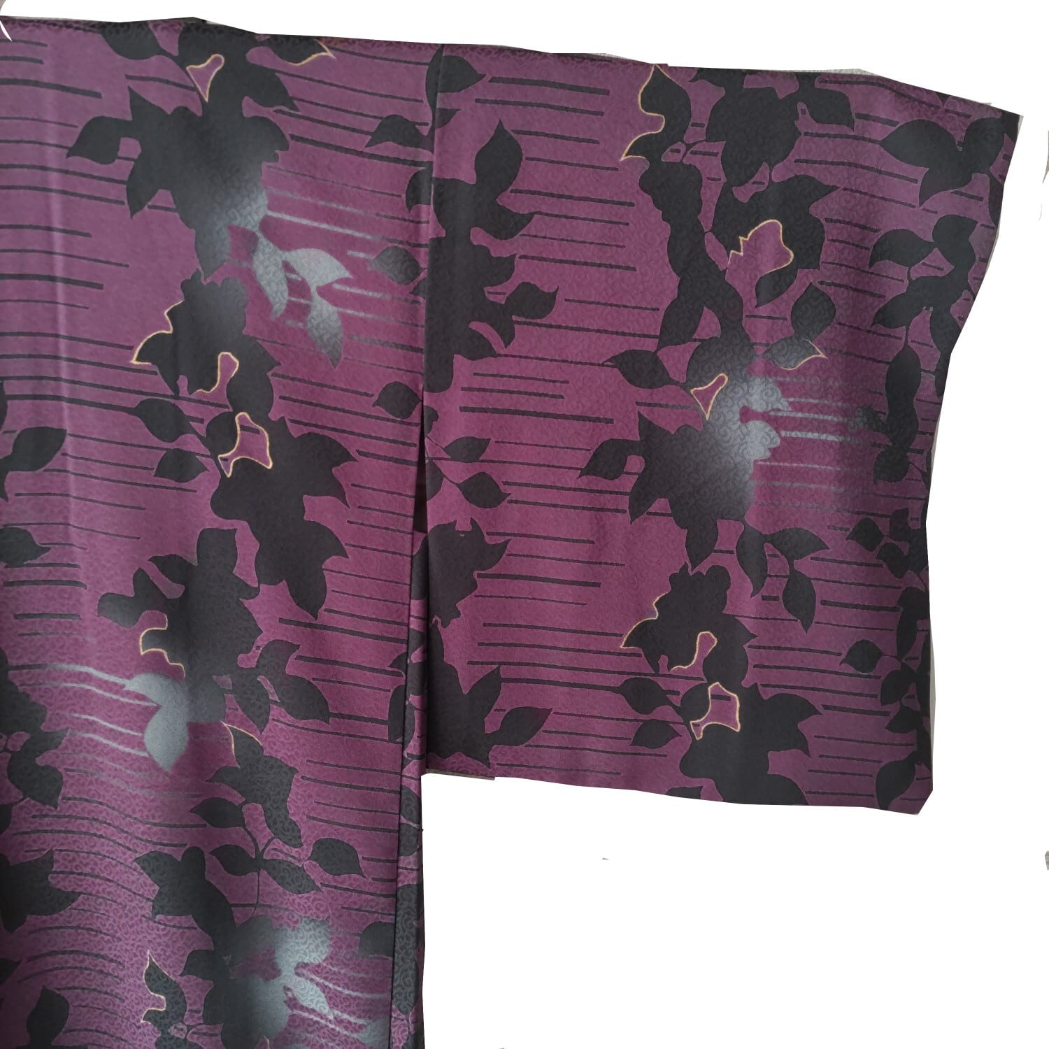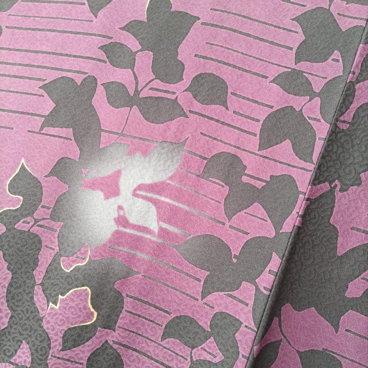 ろうけつ染めの着物作家 斎藤良樹さんの作品です。よく見るとおしゃれな地模様のある綸子地にろうけつ染めで描かれたユーロテイストなお花がきれいなお羽織です。