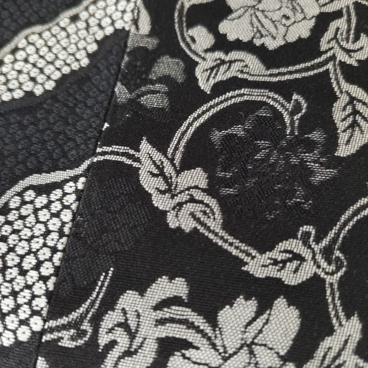 黒地 全通 匹田模様 牡丹唐草 袋帯
