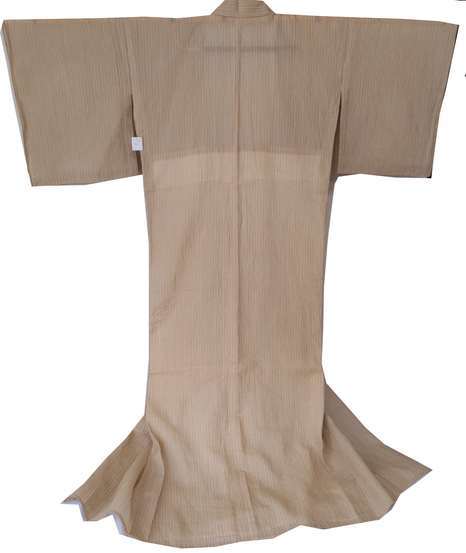盛夏の代表的な麻着物の小千谷縮です。広衿で居敷あてを付けてあります。身丈167cm ゆき70cm 袖丈49cm 前幅24cm 後幅30です。状態はあまり使っておらず、特に汚れ等みられずきれいな状態です。