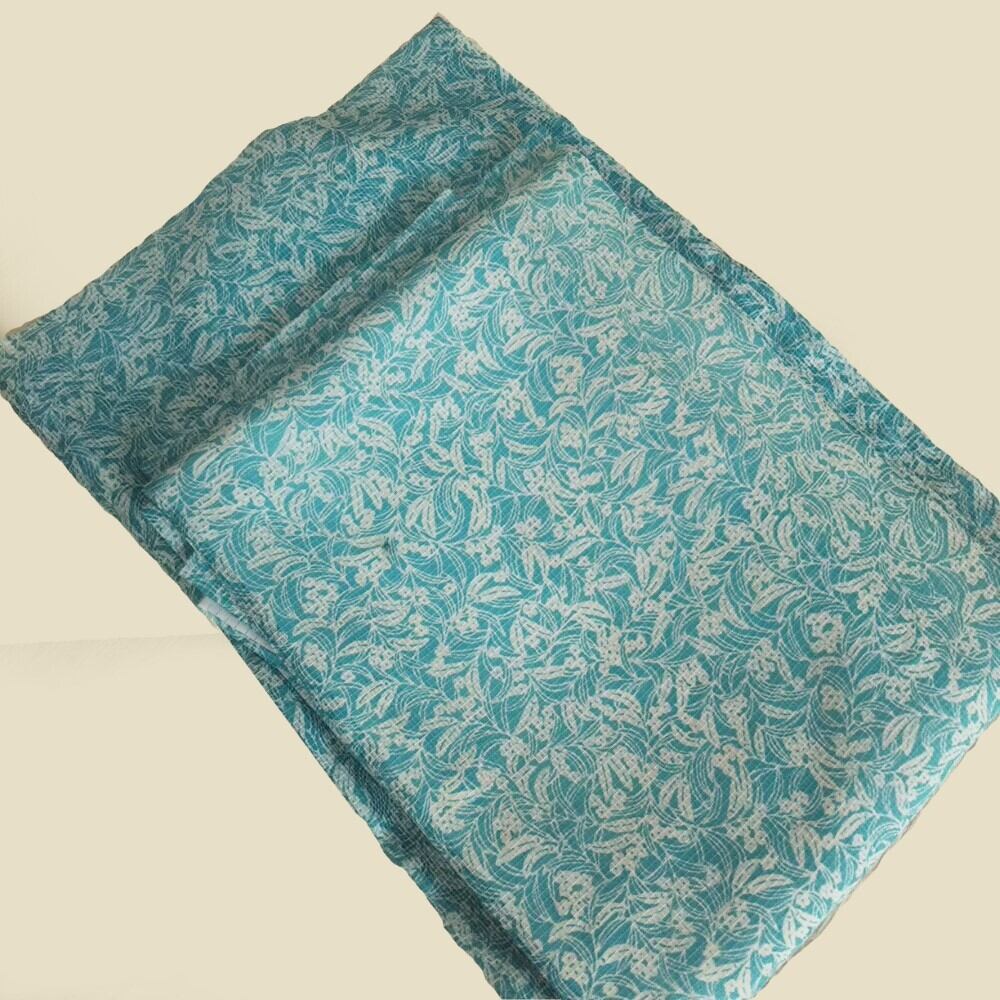 あきの七草のオミナエシをデフォルメした模様の鮮やかな清涼感のあるブルーの絹紅梅です。