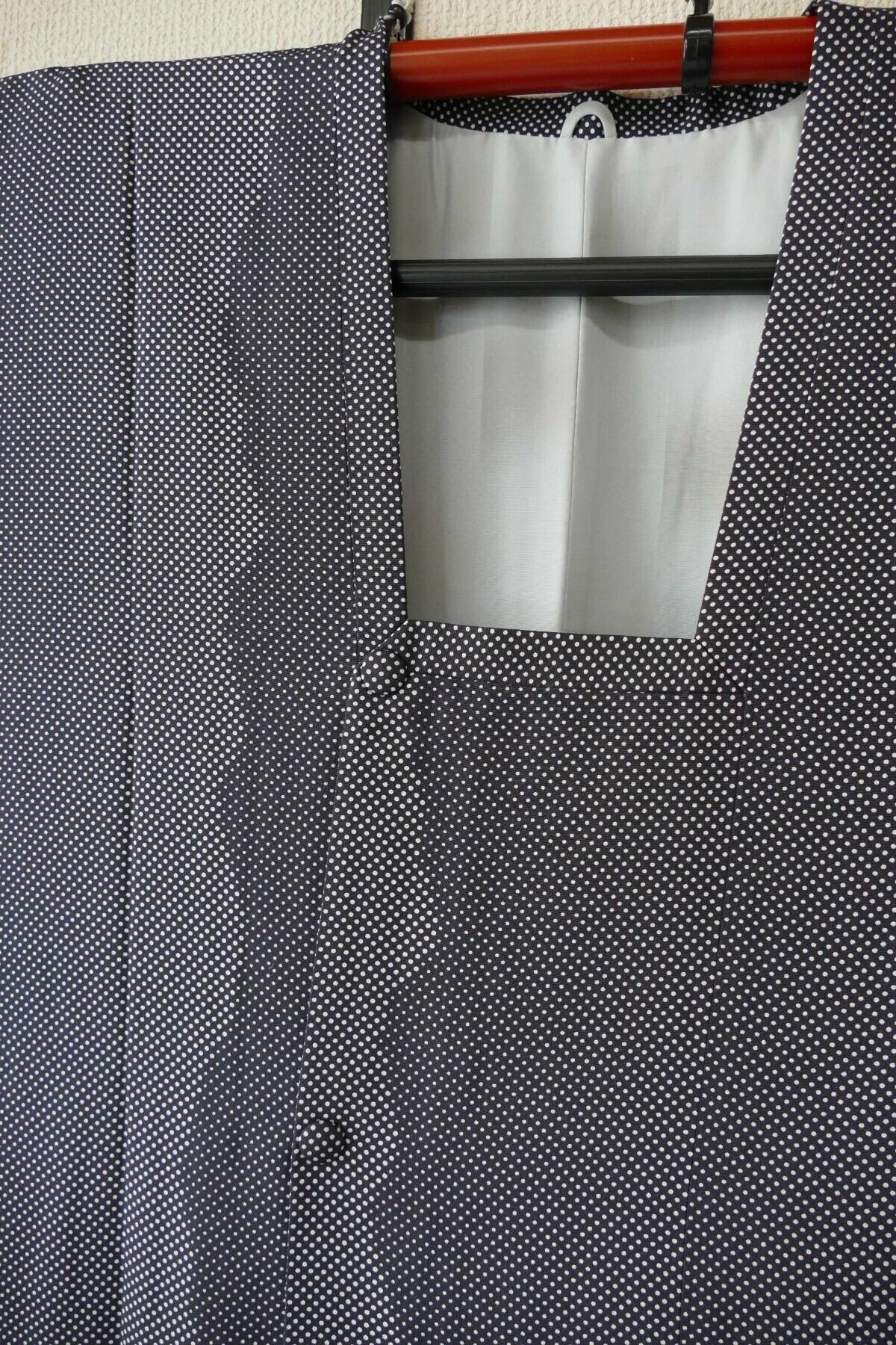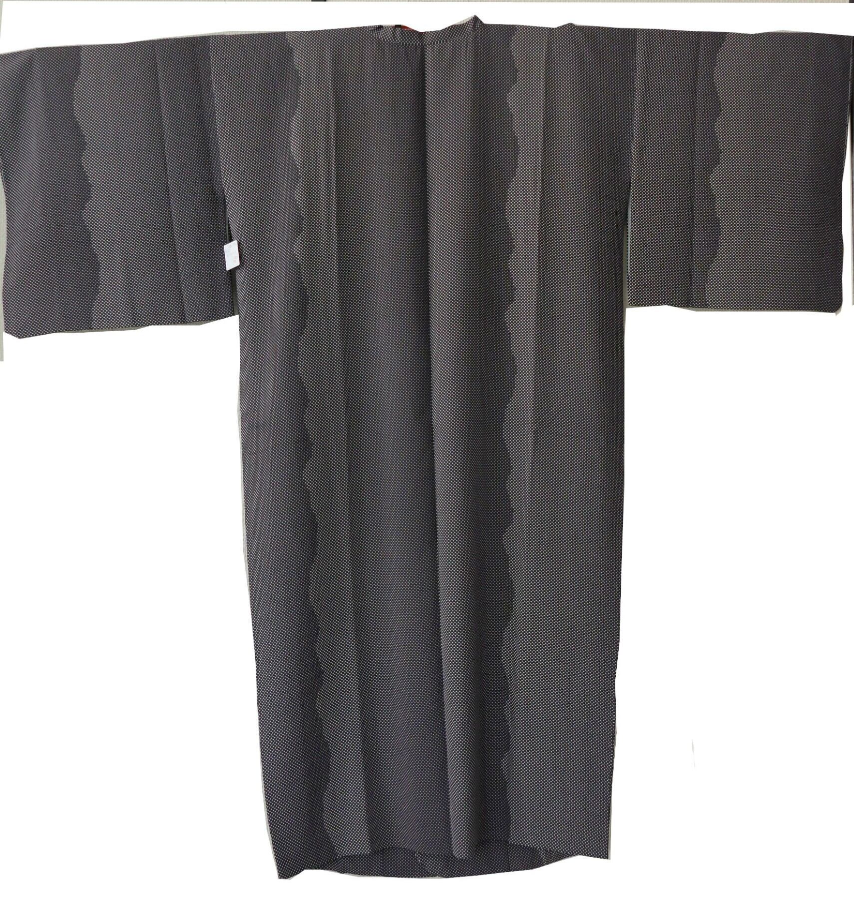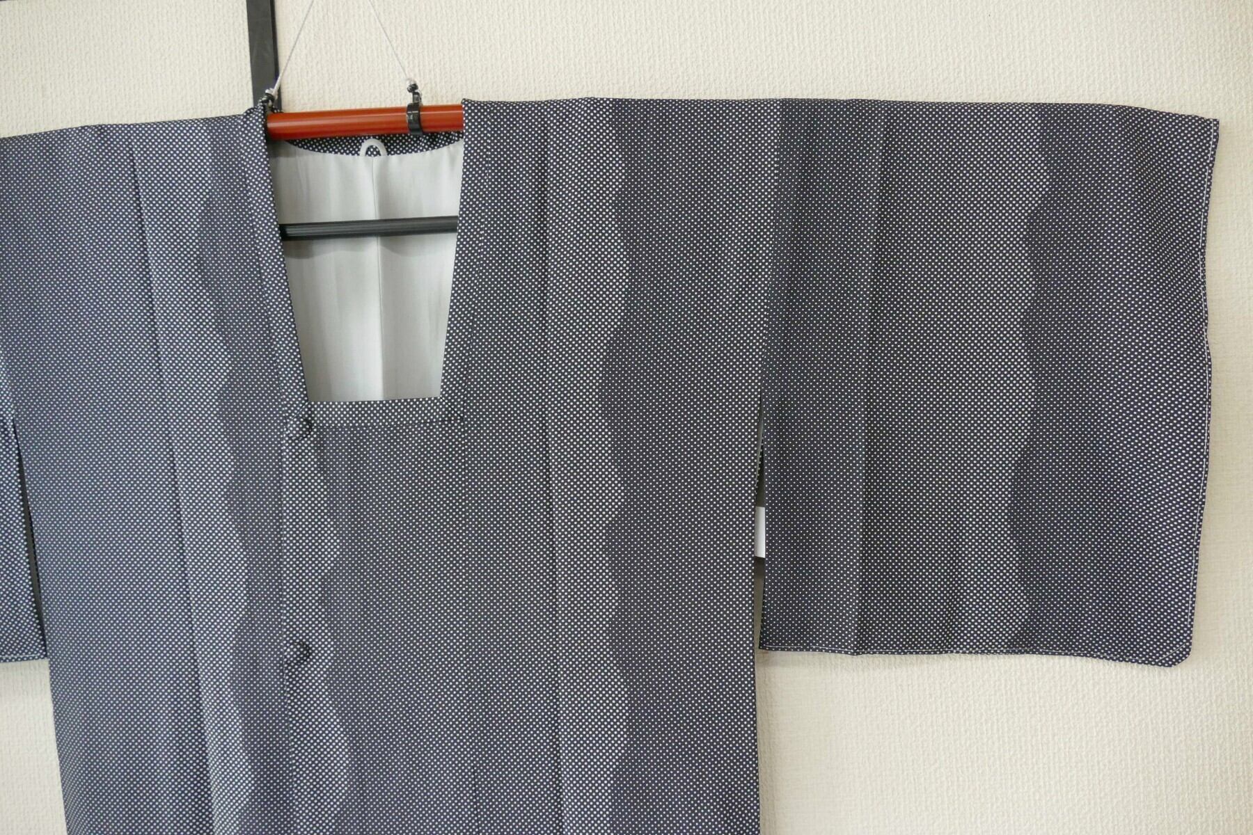総丈のコートです。細かなドット柄にモノトーンのグラデーションの素敵な柄と思います。