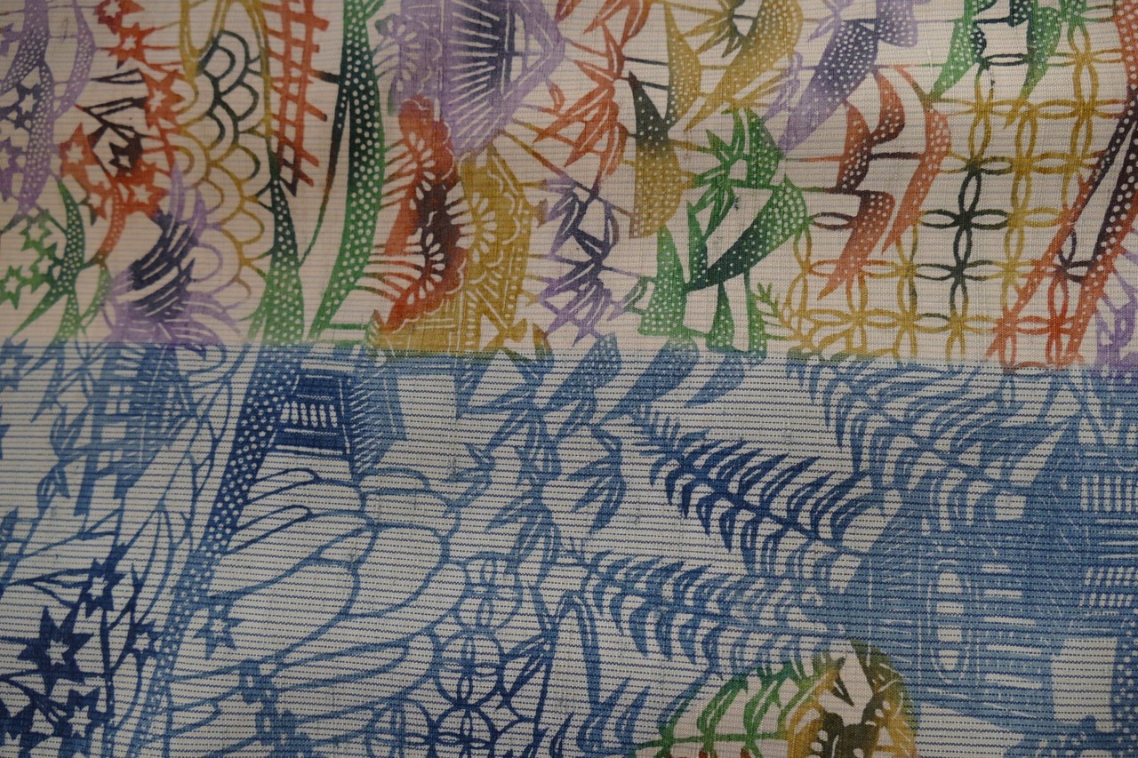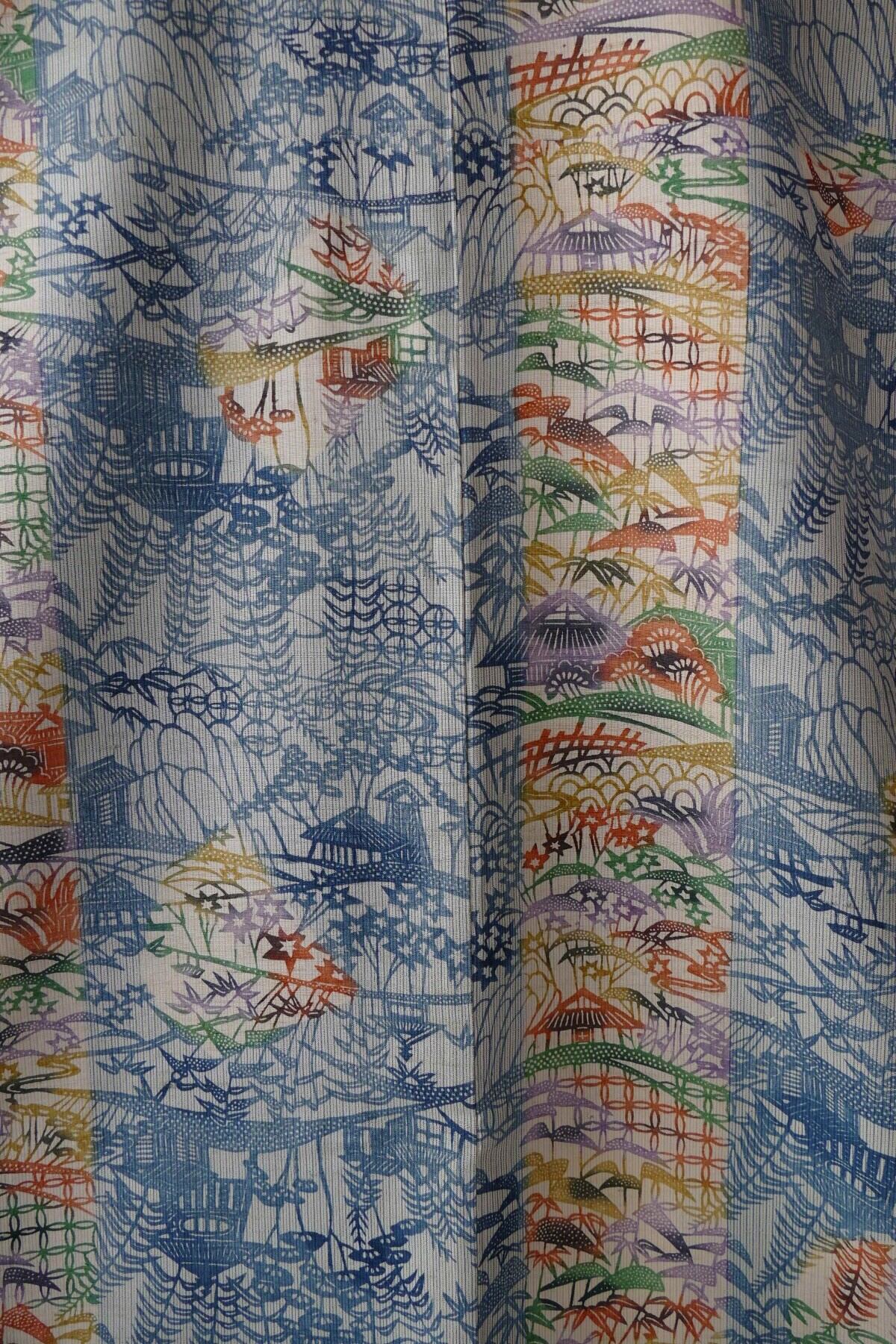 柔らかく肌触りの良い良質の紬に型染めで藍を主体にきれいな色で染めた型染めの着物です。
